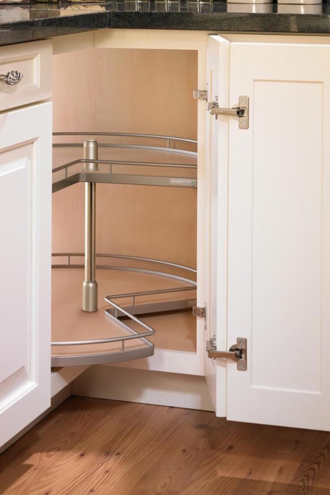 When placed in cabinets it’s easy to turn functionality makes accessing and sorting spices and other kitchen items a breeze. The corner Susan of today is strong and durable enough to handle cumbersome cookware. Furthermore, when installed in base cabinets finding and retrieving required cookware is simplified.
