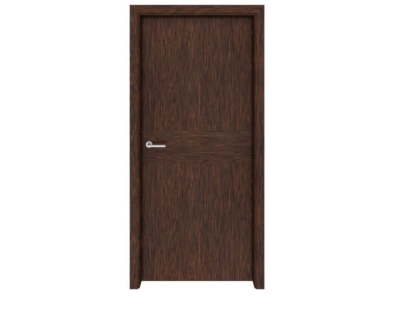 Don't just hang a door, start a design line in your room with the installation of this indoor door finished in genuine dark walnut veneer. In this model the grain is laid vertically throughout, except for a narrow swath at the center, which runs horizontally. This center line helps create a line of design that takes the eye in a horizontal direction around the room.