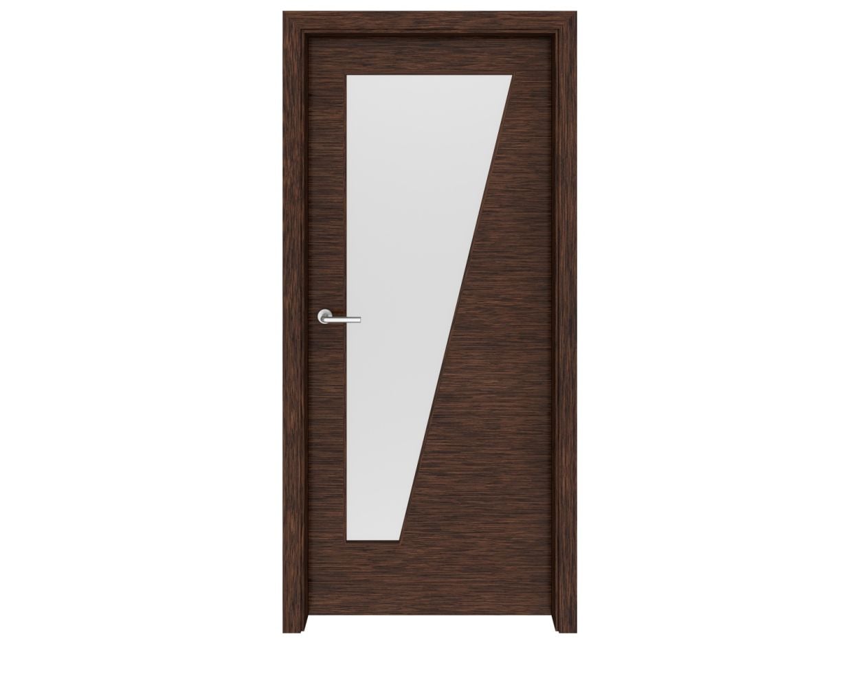 If lots of light and lots of style are what you want in a door, this interior glass door is the perfect option. With an inverted triangle of glass set against dark walnut veneer, it truly is a modern work of art with a lot of function.