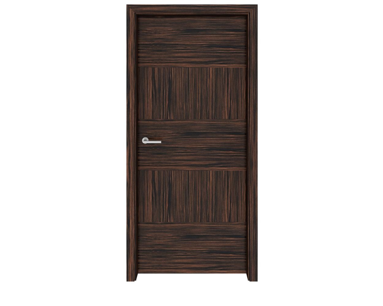 Ebony Macassar is a species of ebony named for the Indonesian island where it is found. It has a dramatic look, with a reddish brown background and striations of darker brown and black. The wood is also very hard and durable, and resistant to moisture, making it a perfect natural material for door construction.