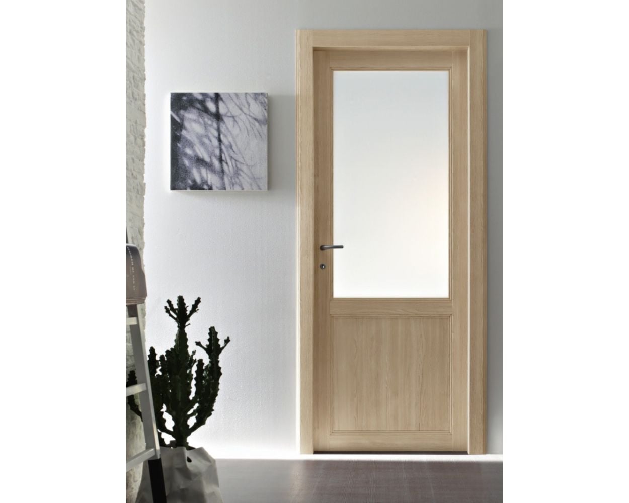 In fir strips, th. 40 mm, covered in CPL in the same finishes as the door panel