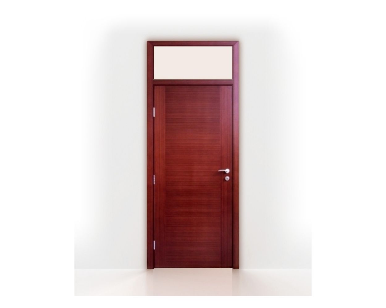 Handsome and stately, this red oak transom door will make a good first impression on all who enter the room. It is just what's needed in a professional office space or studio, living room, or any other area where people might congregate. The door is constructed of solid eco-friendly wood, with absolutely no fillers, which gives it a sound proof quality and affords extra privacy where needed. It also has a transom window overhead, allowing some light in from the next room without compromising privacy. This door features a quality oak veneer, which has been stained in a rich brown red that is compatible with dark furnishings and accessories and brings out the best in artwork. As with our entire interior door collection, this red oak transom door comes ready to install, with a matching wood frame and coordinating hardware in a satin chrome finish.