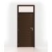Some of the most beautiful rooms are those that rely on the beauty of wood and the interplay of natural tones and textures to carry out a modern theme. This transom interior door would fit perfectly into such a room. It is characterized by rich dark brown walnut veneer with a grain that runs horizontally for the most part, but vertically at the edge of the door slab for a slight difference in effect. On top of the door is a transom window that allows light from beyond the room to shine through, while maintaining a sense of privacy within. The door is completed with a ready made door jamb and all the working hinges and hardware. This transom style, highlighted by the sumptuous walnut veneer, makes an elegant entrance into the room and is an excellent companion for wood floors, baskets, and furniture upholstered in organic fabrics like linen or cotton.