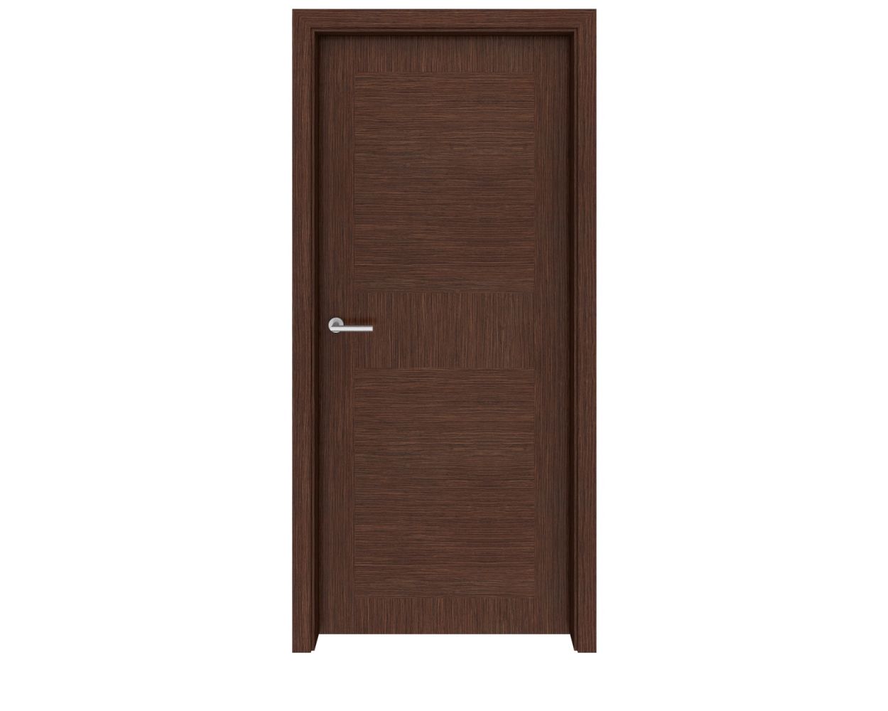 The walnut wood is a genuine wood veneer crafted in Italy. Walnut is a hardwood species native to North America and Europe that is prized for its dark coloring - a rich golden brown with highlights of darker brown and black. Walnut is also very durable, making it a perfect choice for an interior door that is used frequently.