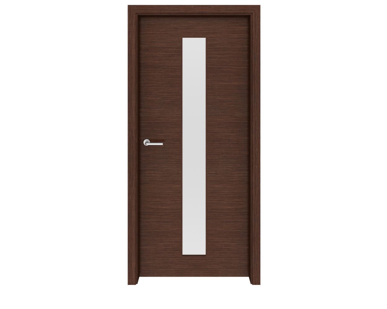 The wood used in this glass door is a genuine wood veneer of solid walnut, imported from Italy. Used in flooring and furniture, walnut is a fine choice for an interior door, as it is long lasting and very resistant to wear and tear. The color is a deep golden brown with a variable grain that runs from darker brown to almost black.