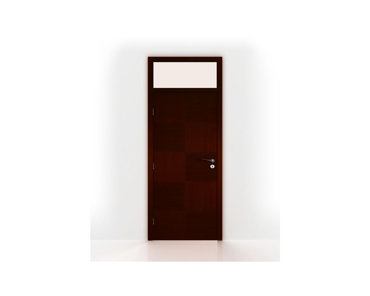 Want to inject a little fun into your living room? With its checkerboard design, our wenge glass transom door hints at a good time to be sure. Expert craftsmen apply wenge wood veneer in blocks that run cross grain, vertically and horizontally, cleverly creating the look of an inlaid game board. The African wenge, with its dark brown color and intricate grain, is the perfect wood to carry out this effect. This 8-foot door also features a glass transom window on top, which allows for a little more illumination of your communal area. The checkers design door is an obvious choice for a family or living room, but would also suit a modern bedroom or kitchen very well, too. As with all of our doors, this model comes equipped with a coordinating wood frame, along with all the hardware that's needed for quick and easy installation, including hinges and the door lever.