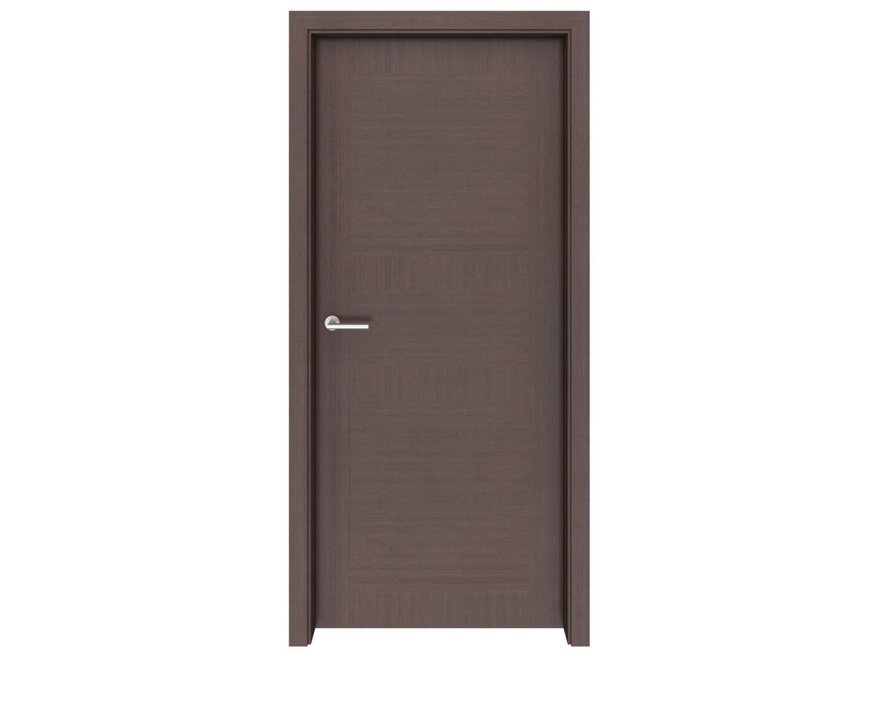 With this design, we’ve taken the classic idea of a paneled door and turned it on its head for a look that is very modern and fresh. Wenge graphite veneer, a unique material growing in popularity, is arranged in a panel like fashion, using the wood grain to form the design.